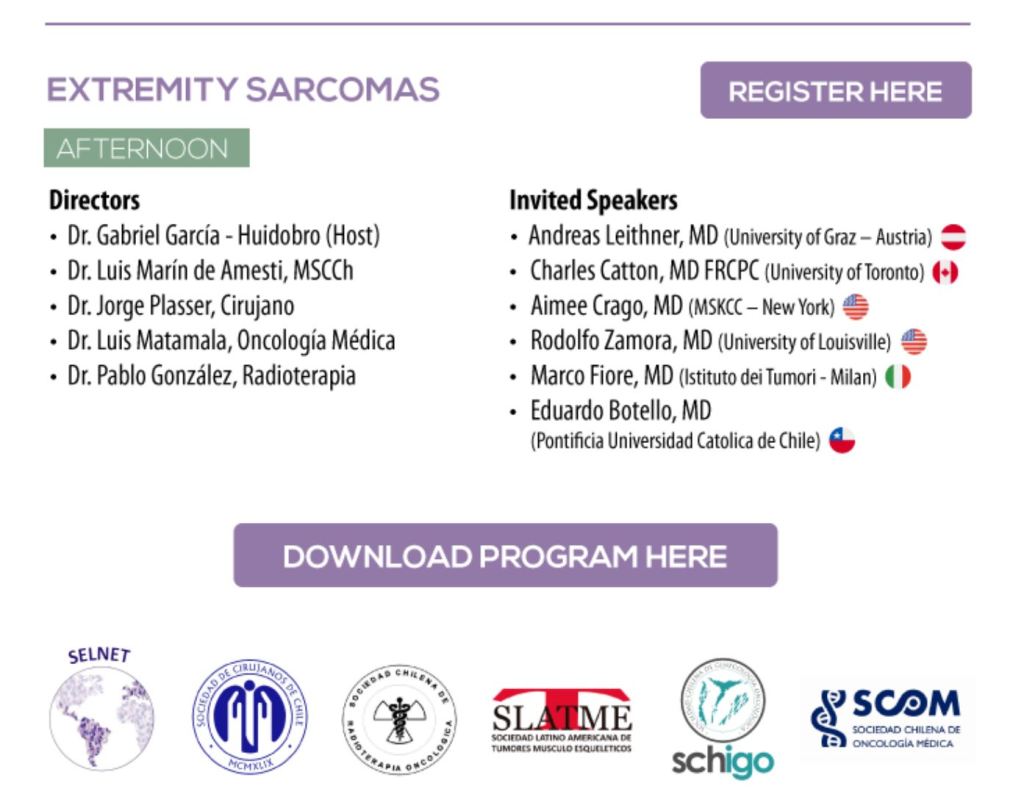 Register here for Extremity Soft Tissue Sarcoma Session: https://roche.zoom.us/webinar/register/WN_E6Vi3qpXSDWGpHfWMiAUsw?utm_campaign=13801:%20TEST%20MAIL%20INVITACI%C3%93N%20SEMINARIO:&utm_source=MasterBase%20FALPMKTCL&utm_medium=email&utm_content=2&utm_term=none